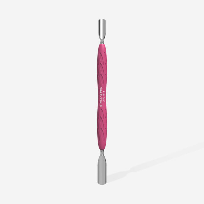 Der Maniküreschieber Gummy mit Silikongriff UNIQ 10 Typ 1 ist ein unverzichtbares Werkzeug für eine präzise, professionelle und schonende Nagelpflege. Mit seinen zwei funktionalen Enden – einem abgerundeten breiten Schieber und einem abgerundeten schmalen Schieber – eignet er sich ideal zum Zurückschieben der Nagelhaut und zum gründlichen Reinigen des Nagelbettes. Durch die abgerundeten Formen wird die Nagelhaut sanft behandelt, ohne Verletzungen oder Kratzer zu verursachen.